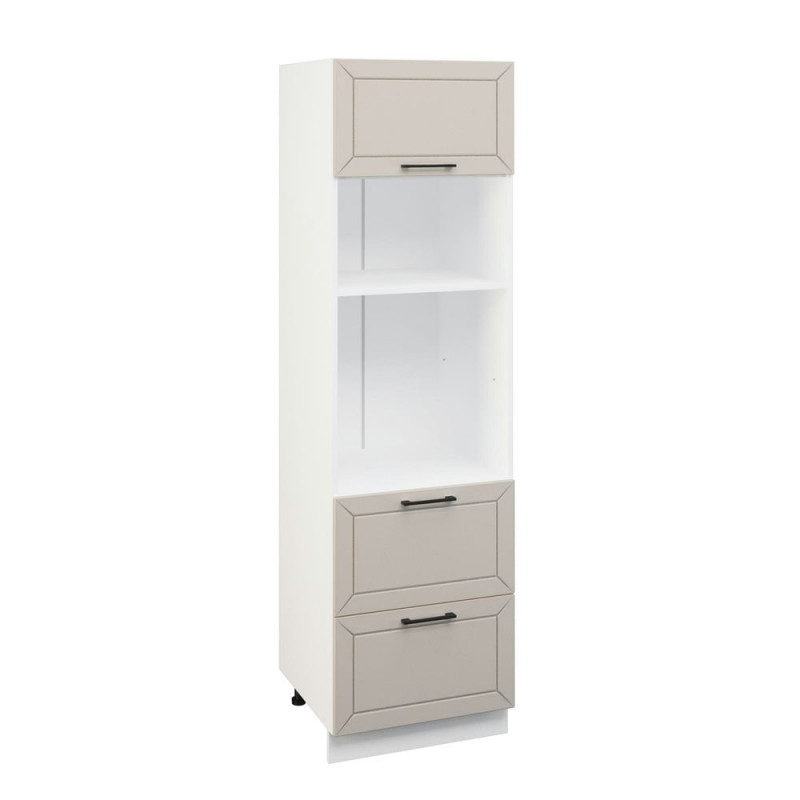 Пенал, шириной 600 мм с откидным фасадом, с двумя ящиками и с нишами для встраиваемого духового шкафа и микроволновки